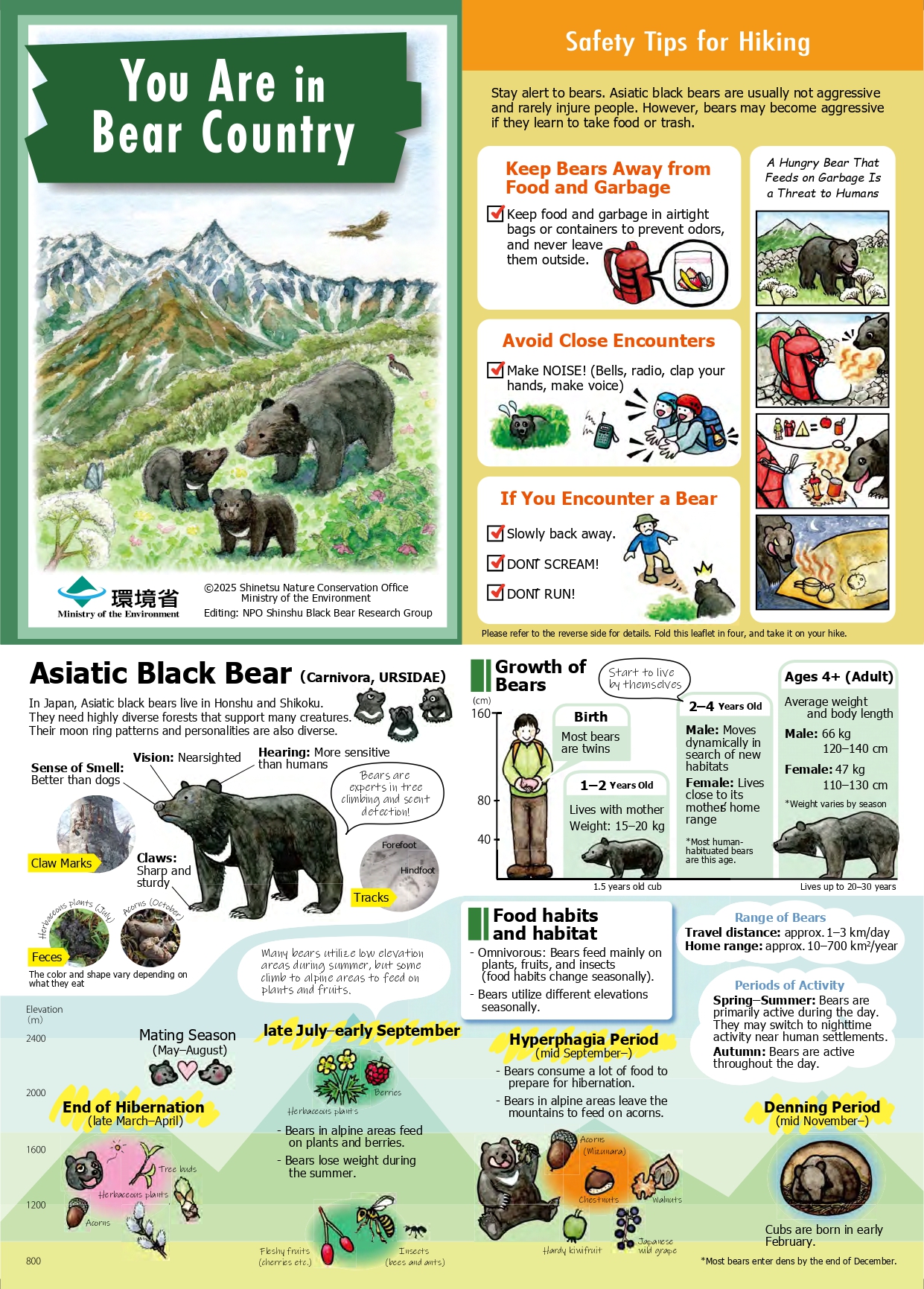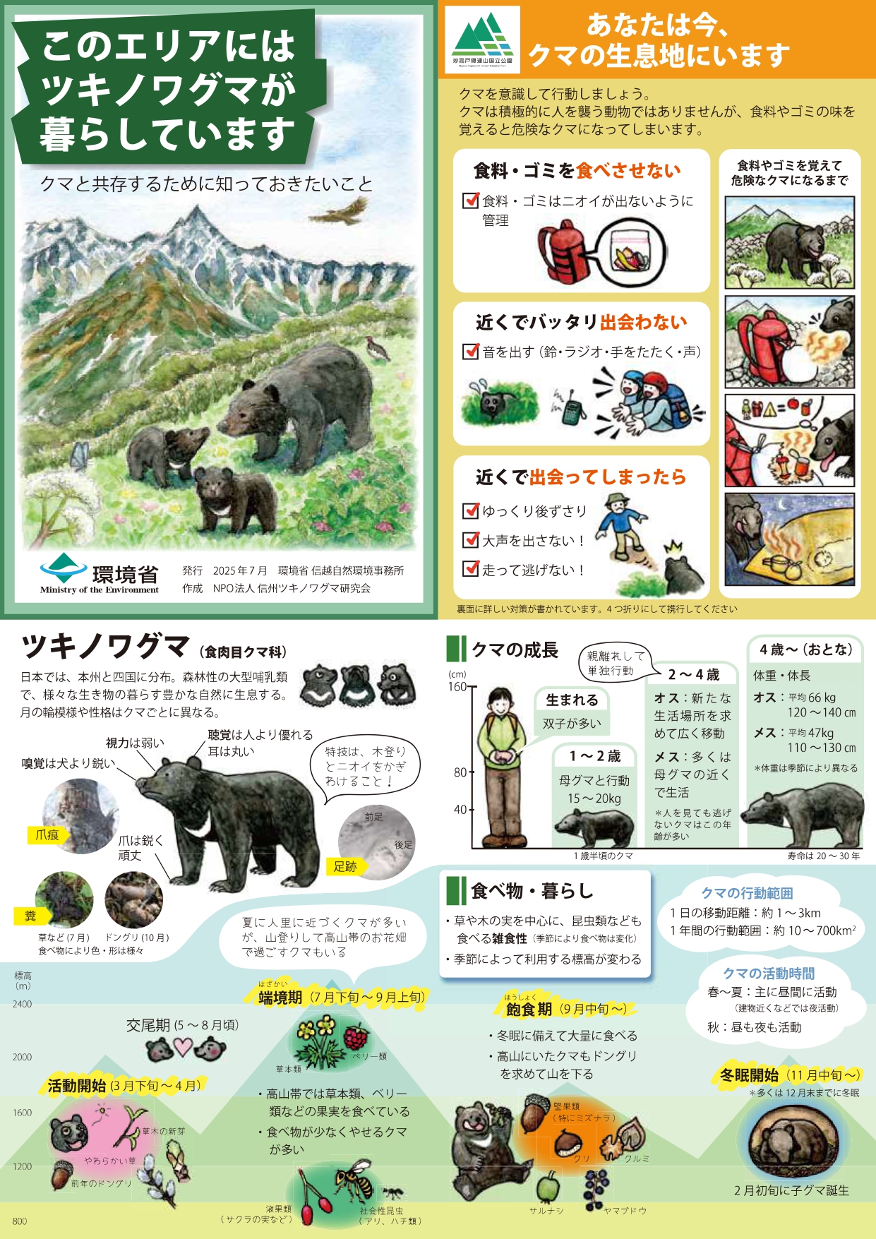 下記サイトも参考にしていただき、クマを目撃した時は、速やかに最寄り警察署又は長野市森林いのしか対策課(電話026-224-8470)へ連絡をしてください。