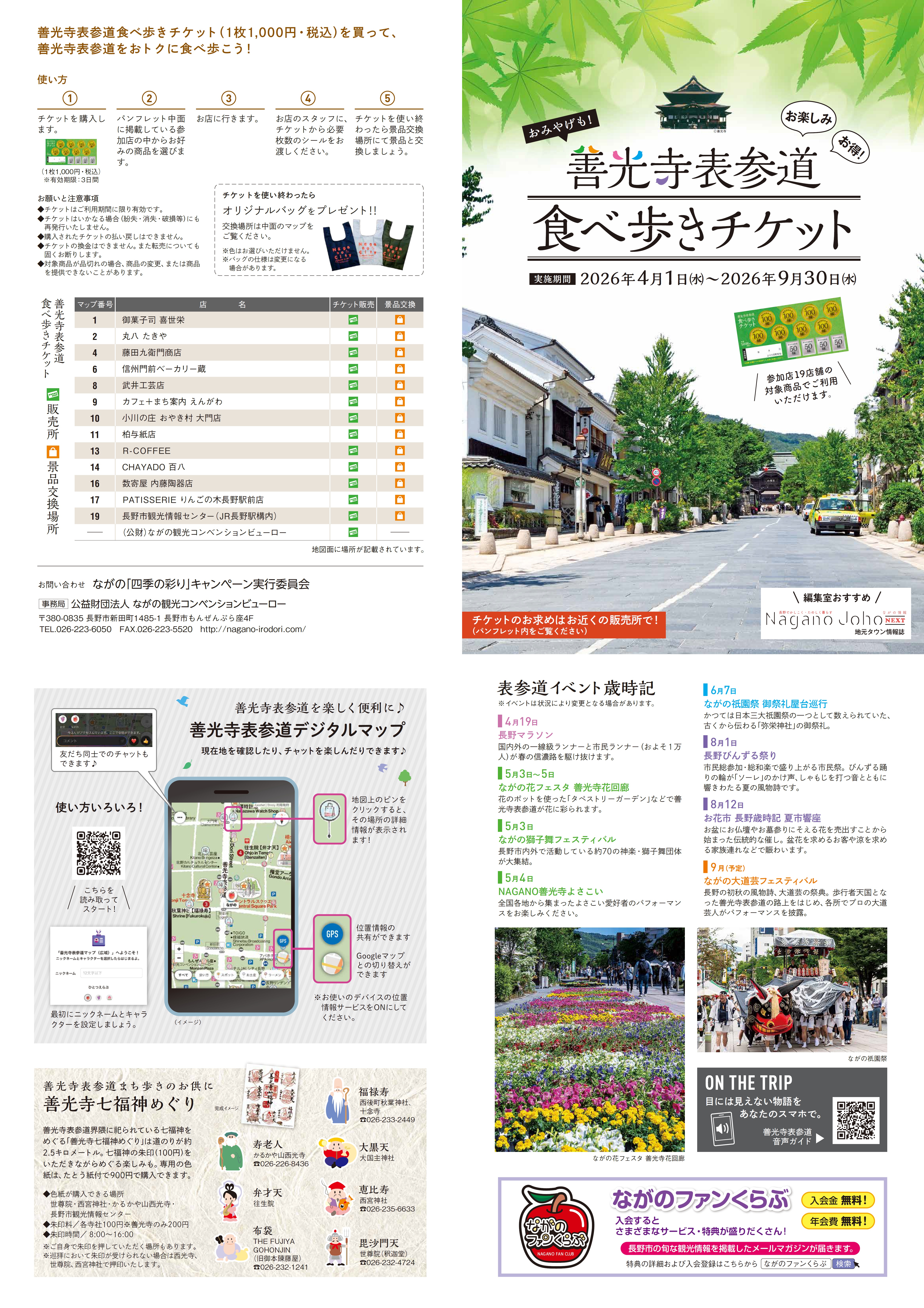 善光寺表参道ならではのおみやげ店、飲食店等19店舗でお使いいただけます。