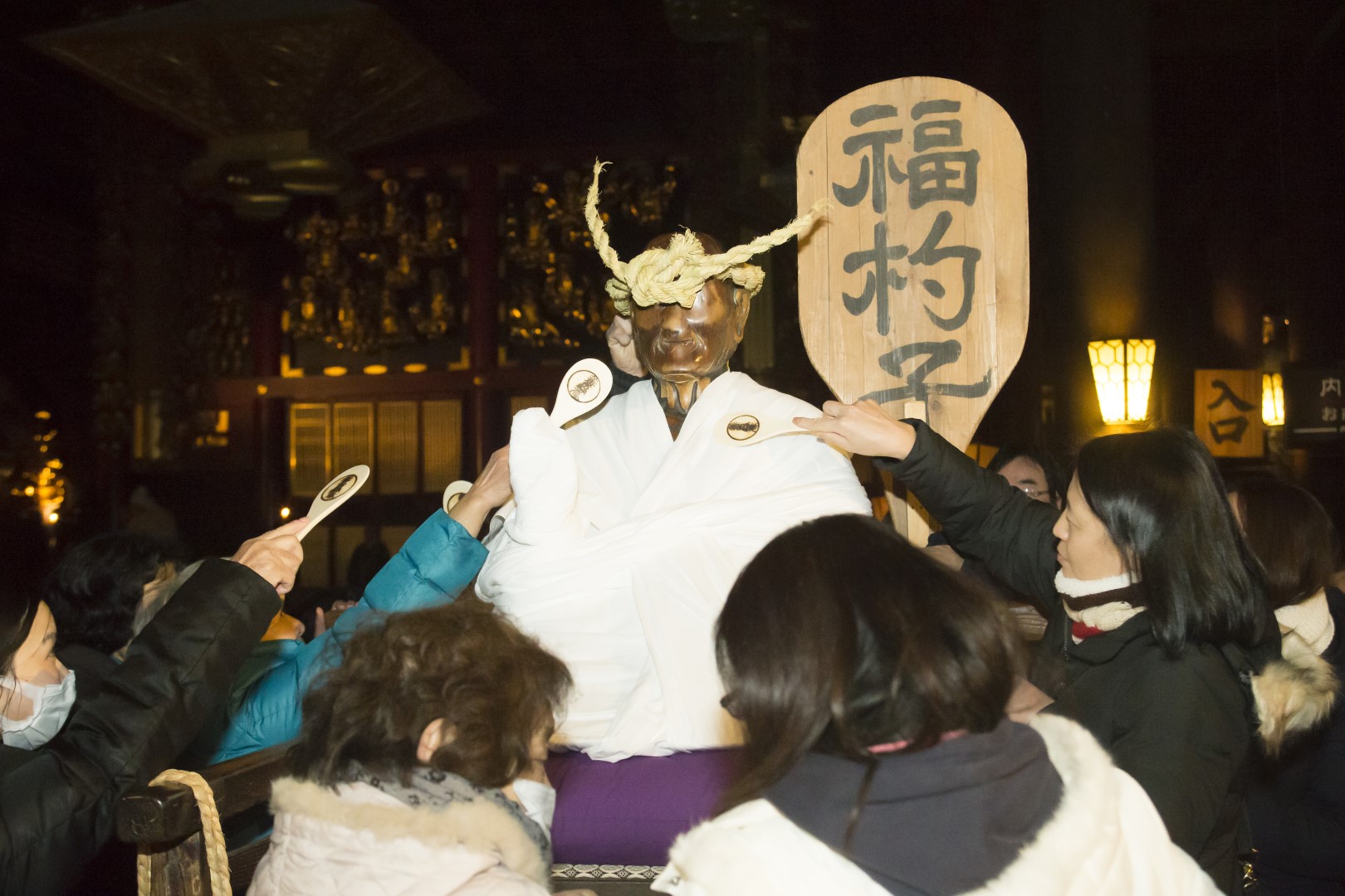 本堂の「びんずる尊者像」を信者が引きまわす行事です。参拝者は僧侶からいただいた「福しゃもじ」で撫で、一年間の来福と無病息災を祈ります。